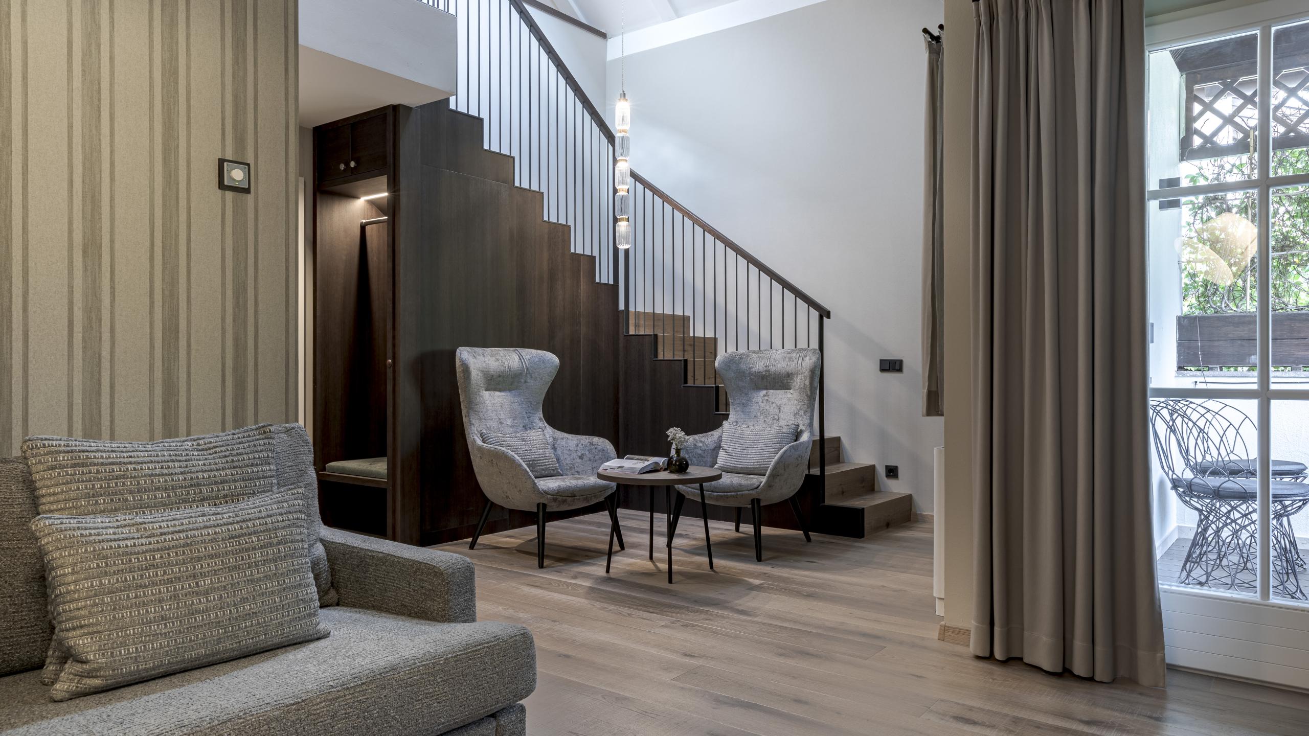 Una suite estremamente romantica in stile loft vi attende con tutti i comfort del Magdalener Hof: design moderno, comfort assoluto, arredi pregiati e tanto spazio per voi e la vostra dolce metà. La Suite Attico offre un ampio soggiorno con divano, un WC di servizio e un angolo salotto per rilassarsi. La camera da letto al piano superiore é raggiungibile attraverso scale.